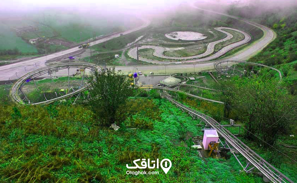 مسیر ریلی به طول حدود ۱ کیلومتر و ۵۵ متر، با دو مسیر ریلی و مارپیچ، دارای واگنهای تک نفره و دو نفره مجهز به ترمز دستی، سرعت تا حداکثر ۴۰ کیلومتر بر ساعت |