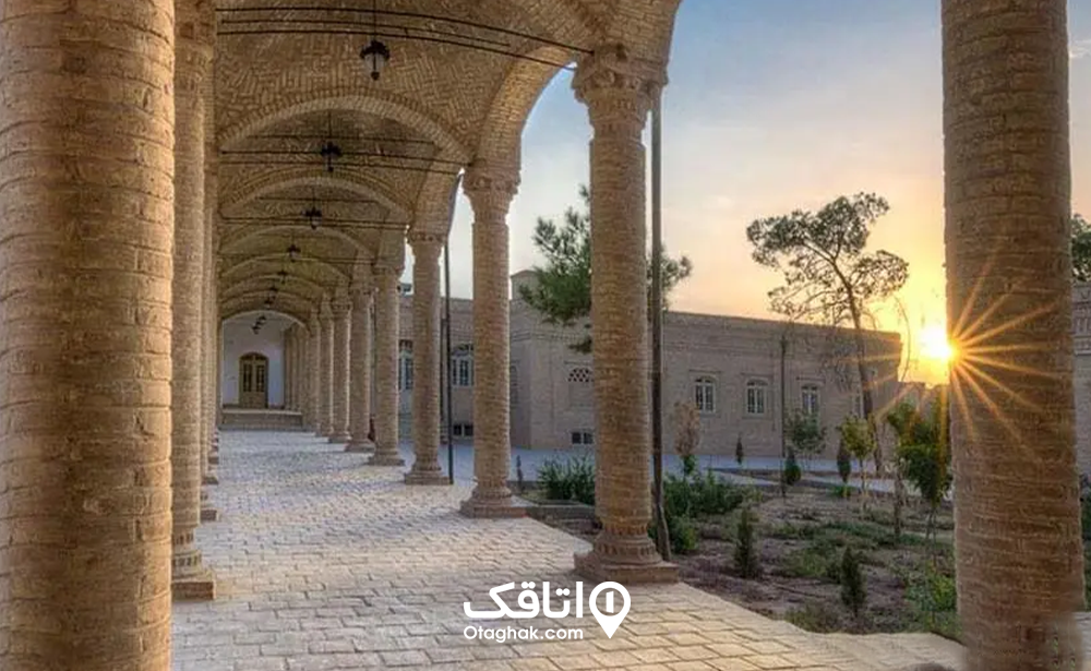 بنایی نورگیر با حیاط مرکزی، ستون‌های متقارن، سیستم سنتی آب (قنات و آب‌انبار) و قرارگیری موزه در بنای تاریخی