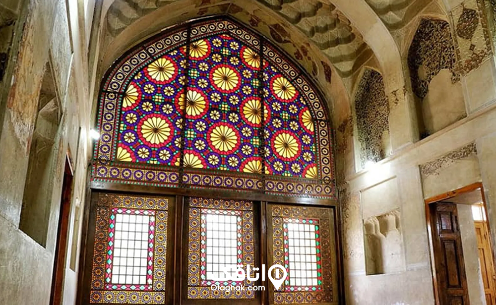 دیوار اتاقها آجری است و پنجرههای بزرگ چوبی نور را بهخوبی به داخل هدایت میکنند. برخی پنجرهها با شیشههای رنگی تزئین شدهاند و هنگام تابش خورشید، رنگها بر زمین و دیوارها میرقصند و فضایی دلنشین میآفرینند. در هر اتاق، عناصر معماری سنتی مانند سردرها، طاقچهها، مقرنسها و قطاربندیها دیده میشود؛ جزئیاتی ساده اما چشمنواز که سبک معماری زندیه را بهخوبی نمایان میسازد.