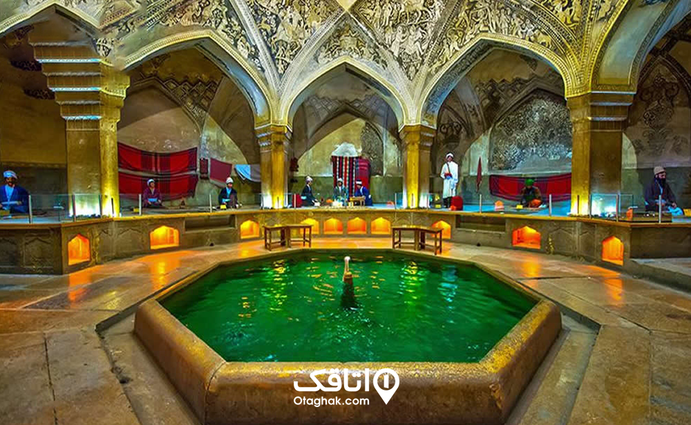 حمام وکیل یکی از شاخصترین بناهای دوره زندیه در شیراز است که به دستور کریمخان زند ساخته شد و وی شخصاً بر روند ساخت آن نظارت داشت. این حمام تنها محلی برای شستوشو نبود، بلکه نقش مهمی در زندگی اجتماعی مردم ایفا میکرد و برای مراسمهایی چون دامادی و جشنهای خانوادگی مورد استفاده قرار میگرفت. معماری آن با دقتی ویژه طراحی شده تا هم زیبایی و هم کارکرد عملی داشته باشد؛ ورودی کوچک و زاویهدار، هشتی پایینتر از سطح زمین و مسیرهای شیبدار همه برای جلوگیری از ورود سرما و حفظ گرما در فضای داخلی ساخته شدهاند. سربینهی هشتضلعی با ستونهای سنگی یکپارچه و سقف گنبدی، جلوهای باشکوه به بنا بخشیدهاند. در بخش گرمخانه، سنگفرشها بر فراز دالانهای باریکی قرار گرفتهاند که جریان هوای گرم و بخار آب از آن عبور میکرده تا کف حمام زودتر گرم شود. امروزه این حمام با آهکبریها و نگارگریهای چشمنوازش به موزه مردمشناسی تبدیل شده و بازدیدکنندگان میتوانند با دیدن مجسمههای سنتی و شنیدن موسیقی محلی، حالوهوای زندگی و فرهنگ گذشتهی شیراز را لمس کنند.