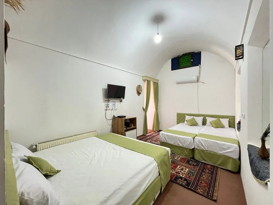 عکس ها برای فصل گردشگری با حوض آب وفواره است ولی در فصلی که ما رفتیم، حوض خالی بود و فضای کلی به قشنگی عکس ها نبود. اتاق هم گرم و تمیز بود ولی دیوارها کمی نم داده بود و کمی ظاهر اتاق رو بد کرده بود. امکانات اتاق خوب و کافی بود مثل ملافه تمیز و یخچال و تلویزیون که ارزشمند بود به نسبت قیمت اتاق.صبحانه هم خوب بود.